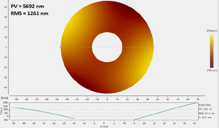 レーザー干渉計では、平行平面サンプルの測定において、表面の反射波面に裏面の反射波面が影響して測定が困難なケースがありますが、低コヒーレンス干渉原理では、短い領域でコヒーレンスを制限することにより、裏面からの干渉の抑制が可能になり、表面のみからの干渉縞が生成されます。